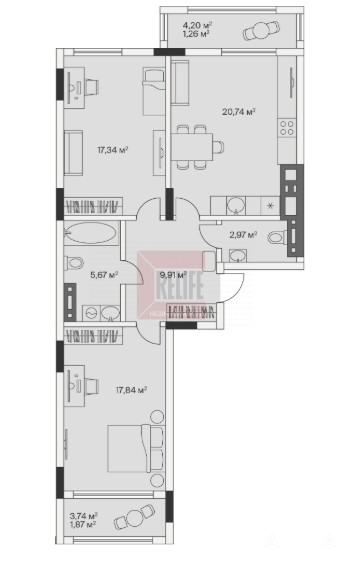 - 20.74 м²