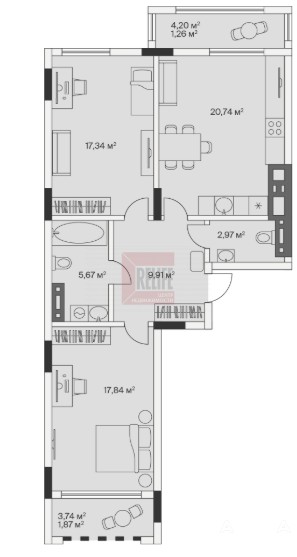 - 20.74 м²