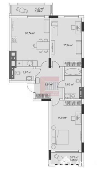 - 20.74 м²