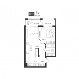 ПРОДАЖА КВАРТИРЫ ОТ ЗАСТРОЙЩИКА! Предлагается просторная 1-комнатная квартира площадью 56, 55/51, 35 кв.м, расположенная на 4-ом этаже 7-ми этажного жилого комплекса бизнес-класса «Гармония». Удачное планировочное решение позволяет организовать комфортное пространство из...