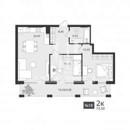 ПРОДАЖА КВАРТИРЫ ОТ ЗАСТРОЙЩИКА! Предлагается уютная 2-комнатная квартира площадью 73, 38/67, 87 кв.м, расположенная на 4-ом этаже 7-ми этажного жилого комплекса бизнес-класса «Гармония». Удачное планировочное решение позволяет организовать комфортное пространство из видовой...