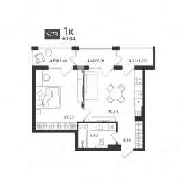 ПРОДАЖА КВАРТИРЫ ОТ ЗАСТРОЙЩИКА! Предлагается шикарная 1-комнатная квартира площадью 60, 82/57, 55 кв.м, расположенная на 4-ом этаже 7-ми этажного жилого комплекса бизнес-класса «Гармония». Удачное планировочное решение позволяет организовать комфортное пространство из...