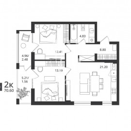 ПРОДАЖА КВАРТИРЫ ОТ ЗАСТРОЙЩИКА! Предлагается шикарная 2-комнатная квартира площадью 70, 08/62, 63 кв.м, расположенная на 2-ом этаже 7-ми этажного жилого комплекса бизнес-класса «Гармония». Удачное планировочное решение позволяет организовать комфортное пространство из...