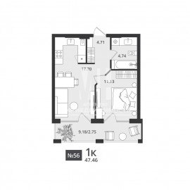 ПРОДАЖА КВАРТИРЫ ОТ ЗАСТРОЙЩИКА! Предлагается просторная 1-комнатная квартира площадью 47, 46/41, 03 кв.м, расположенная на 5-ом этаже 7-ми этажного жилого комплекса бизнес-класса «Гармония». Удачное планировочное решение позволяет организовать комфортное пространство из...