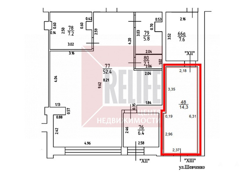 Характеристики:Площадь: 14, 3 м²Высота потолков: 2, 9 мМокрая точка и санузел отсутствуют