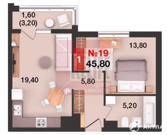 Общая площадь квартиры 45, 8 кв. м., продуманная планировка, которая максимально эффективно позволит использовать пространство помещений и создать любой интерьер: спальня 13.8 кв. м., просторная кухня 19, 4 кв. м. с выходом на балкон 3, 2 кв. м. Высокие потолки и окна из кухни-гостиной создают простор и комфорт для проживания. Автономное отопление обеспечит низкие коммунальные платежи.