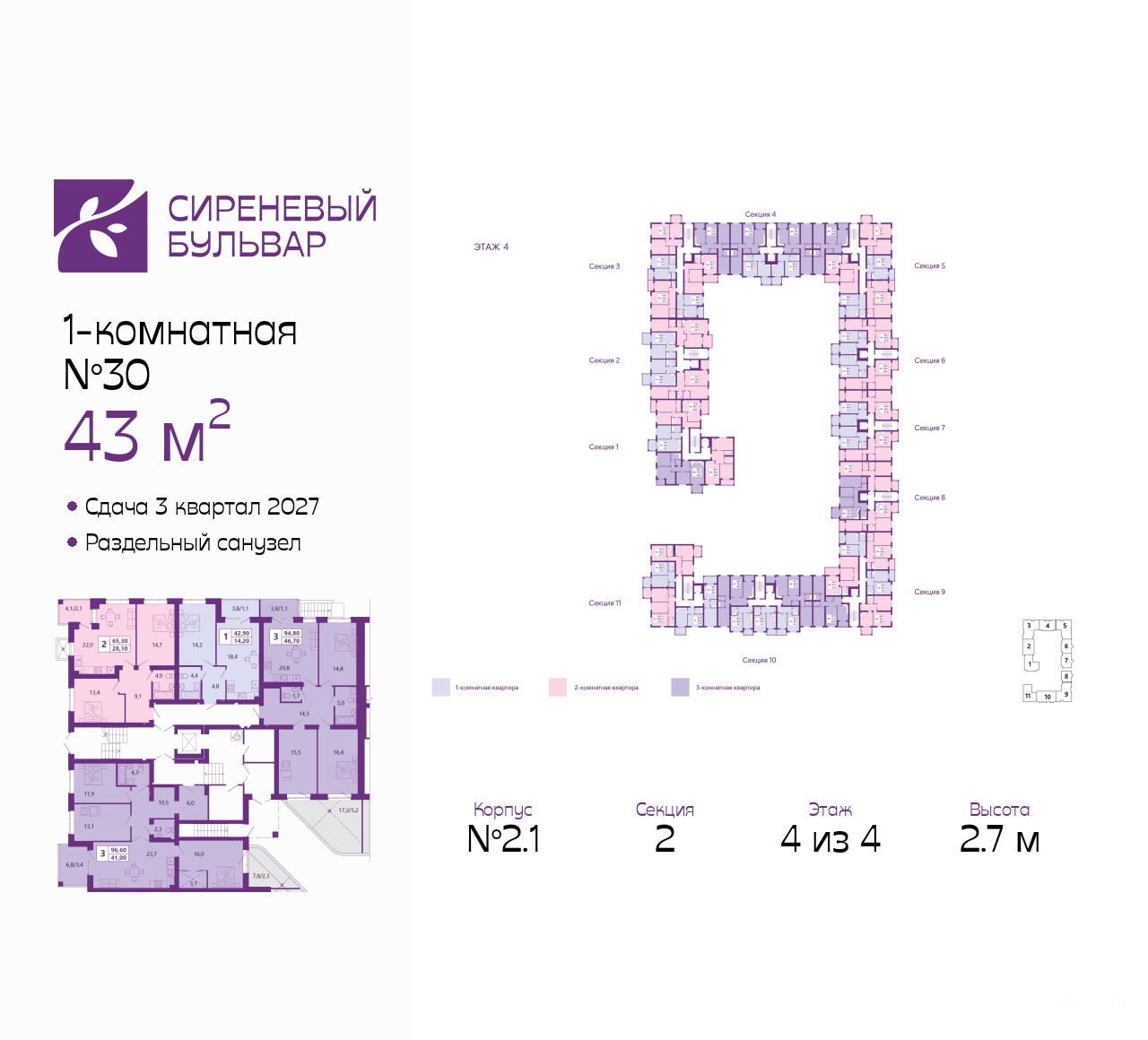 Жилой комплекс "Сиреневый бульвар" это 5 клубных 4-х этажных домов на 16 квартир и 9 домов с несколькими секциями. Вместе эти дома формируют собственное закрытое пространство с дворовыми территориями, спортивными и детскими площадками, местами отдыха и коммерческими помещениями. Дизайнерские входные группы и обилие зелени, удобные зоны отдыха – всё устроено с особым вниманием.