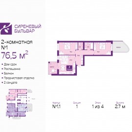 Просторная 2-комн. квартира с первичной отделкой в ЖК "Сиреневый бульвар" на 1 этаже. Общая площадь: 76.5 кв.м., жилая: 30.4 кв.м., площадь просторной кухни-столовой: 21.6 кв.м. Квартира - распашонка, без проходных комнат, окна выходят на paзные стороны дома. В квартире один балкон, один...