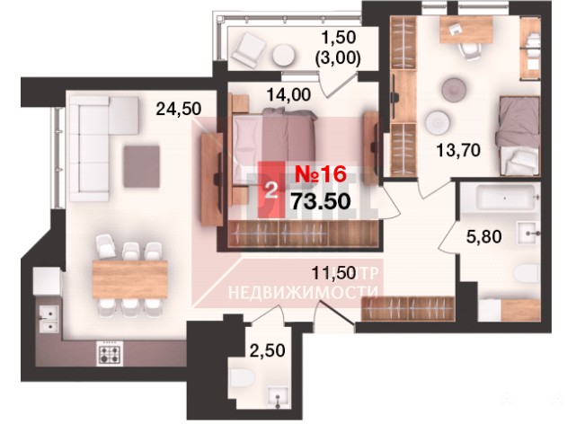 Общая площадь квартиры 73, 5 кв. м., продуманная планировка, которая максимально эффективно позволит использовать пространство помещений и создать любой интерьер: спальня 14, 00 кв. м., вторая спальня 13, 70 кв. м., просторная кухня 24, 5 кв. м. с выходом на балкон 3, 0 кв. м. Высокие потолки и окна из кухни-гостиной создают простор и комфорт для проживания. Автономное отопление обеспечит низкие коммунальные платежи.