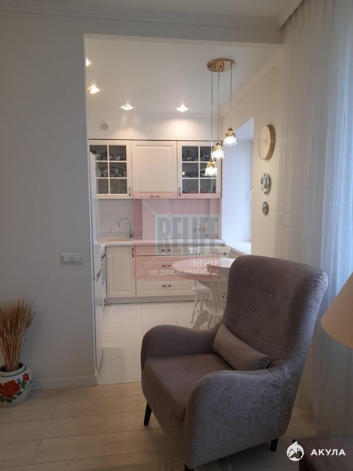 Общая площадь помещения - 22, 7 кв.м. В спальне (площадь 14, 8 кв.м) - выход на просторный балкон с панорамным остеклением. В совмещенном санузле установлены акриловая ванна со стеклянной "шторкой", инсталляция немецкой фирмы «GROHE», большой умывальник и стильное зеркало. Большое преимущество квартиры - наличие отдельной гардеробной, оборудованной стеллажом и полками. Там же установлена стиральная машина «BOSCH». В спальне - удобная кровать (200 на180 см), две тумбочки, встроенный шкаф-купе. В прихожей - два комода. В гостиной - угловой диван с выдвижным спальным местом, тумба под TV и журнальный стол из натурального дерева, комфортное кресло. Кухонный гарнитур выполнен по индивидуальному проекту, оснащен всей необходимой техникой: посудомоечной машиной и духовым шкафом фирмы BOSСH; практичной газовой поверхностью gorenje; мощной вытяжкой; двухкамерным холодильником SAMSUNG с системой no frost. Перечисленные выше мебель и бытовая техника остаются покупателю квартиры.