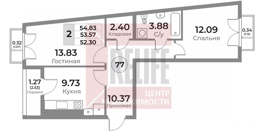 - 54 м²