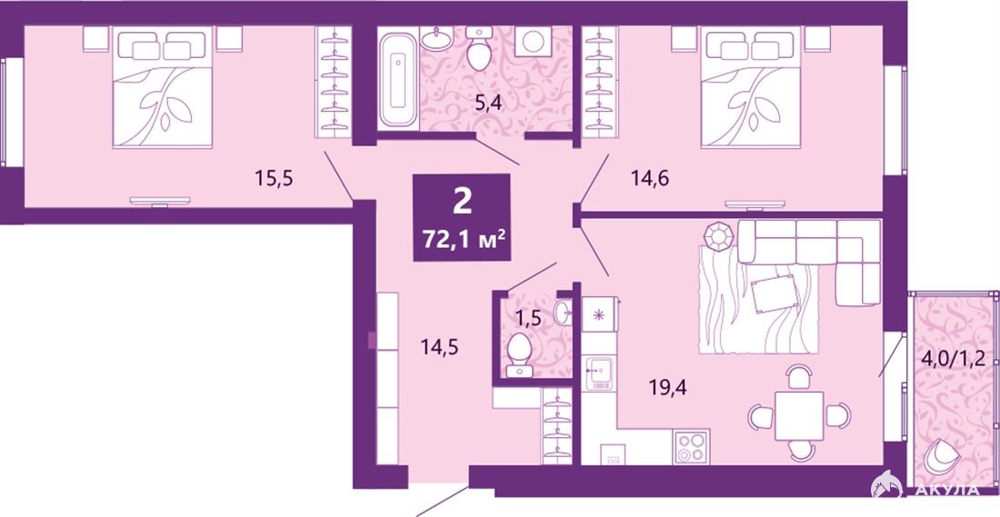 ID в ИМЛС: 47762878 Ойкумена. Комнаты - раздельные. предчистовая. Серия дома - Индивидуальный проект. Двухкомнатная квартира от застройщика с предчистовой отделкой в ЖК "Сиреневый бульвар" на 4 этаже. Общая площадь: 72.6 кв.м., жилая: 30.1 кв.м., площадь просторной кухни-столовой: 19.4 кв.м. Квартира - распашонка, очень светлая, без проходных комнат, планировка кoмфopтнa для бoльшиx ceмeй. В квартире один балкон, один совмещенный и один раздельный санузел. Высота потолков 2.7 м.