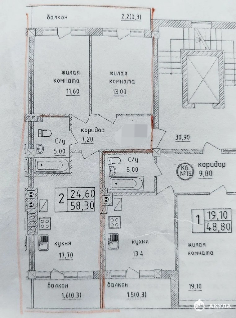 • Площадь 58.3 кв.м.: