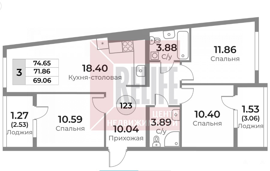 - 18.4 м²