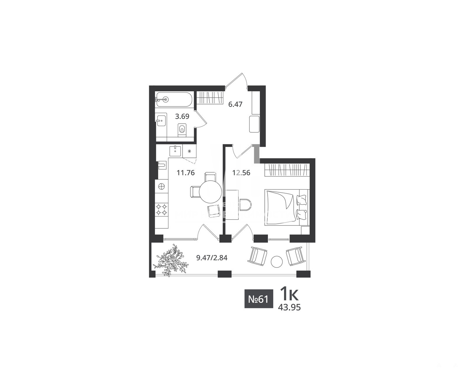 Удачное планировочное решение позволяет организовать комфортное пространство из видовой спальни и просторной кухни площадью 11, 76 кв.м.
