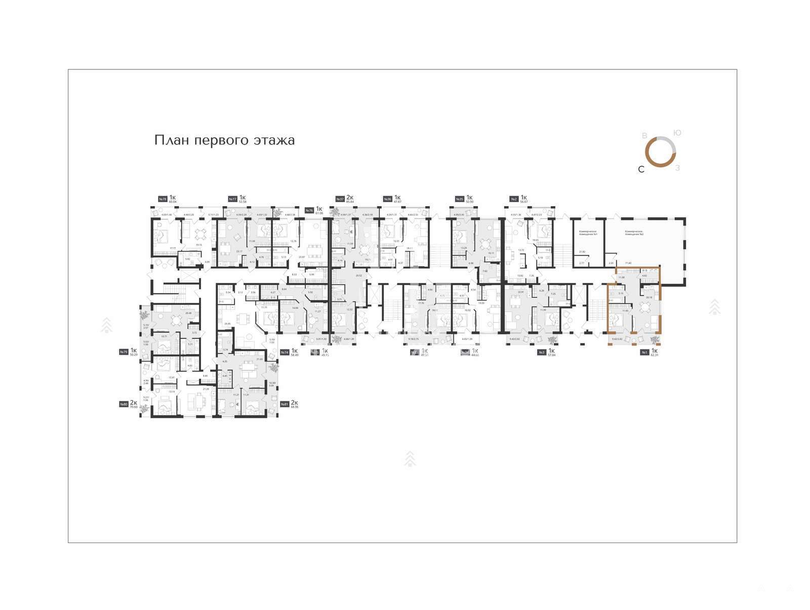 ПРОДАЖА КВАРТИРЫ ОТ ЗАСТРОЙЩИКА(переуступка)! Предлагается шикарная 1-комнатная квартира площадью 62, 31/55, 71 кв.м, расположенная на 1-ом этаже 7-ми этажного жилого комплекса бизнес-класса «Гармония».